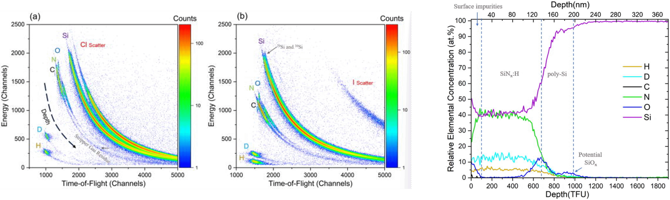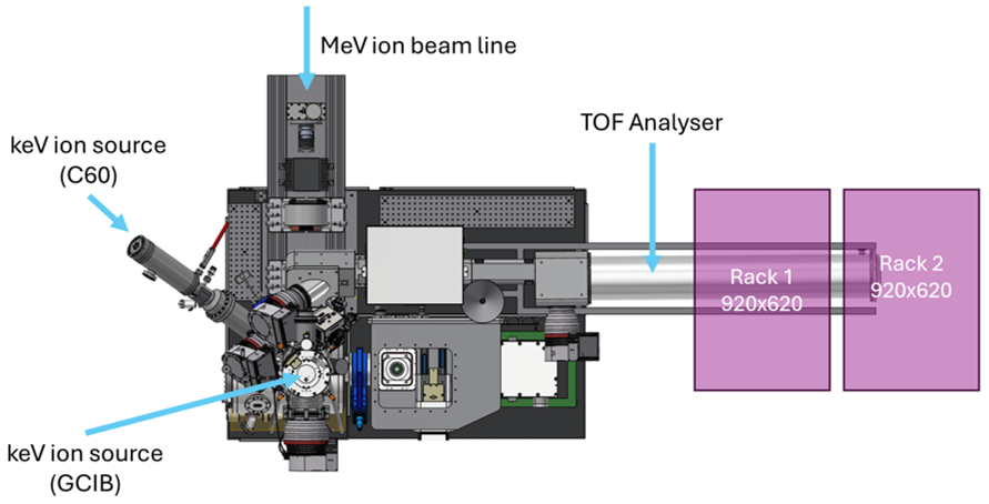 Time-of-Flight Elastic Recoil Detection Analysis (TOF-ERDA) is an ion-beam analytical technique used to determine the elemental composition and depth profiles of materials, particularly light elements like hydrogen. It works by directing a high-energy ion beam—often heavy ions such as iodine or chlorine—onto a sample surface, causing atoms to recoil out of the material. The recoiled atoms are detected, and their time of flight is measured to determine their mass and energy. This combination enables precise identification of elements and accurate depth-resolved quantification. TOF-ERDA offers excellent sensitivity to light elements, which many other analytical methods struggle to resolve. It provides near-surface to micrometer-scale depth profiling with high resolution. Because it measures energy and time independently, it reduces ambiguities in mass separation.
